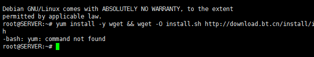 Linux安装宝塔提示-bash: yum: command not found 有解决办法么 yum install -y wget && wget -O install.sh http://download.bt.cn/install/install.sh && sh install.sh debian用这条命令安装 wget -O install.sh http://download.bt.cn/install/install-ubuntu.sh && bash install.sh