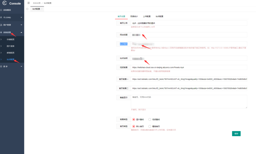 1.1系统设置--站点配置-站点域名 -填写你的域名。