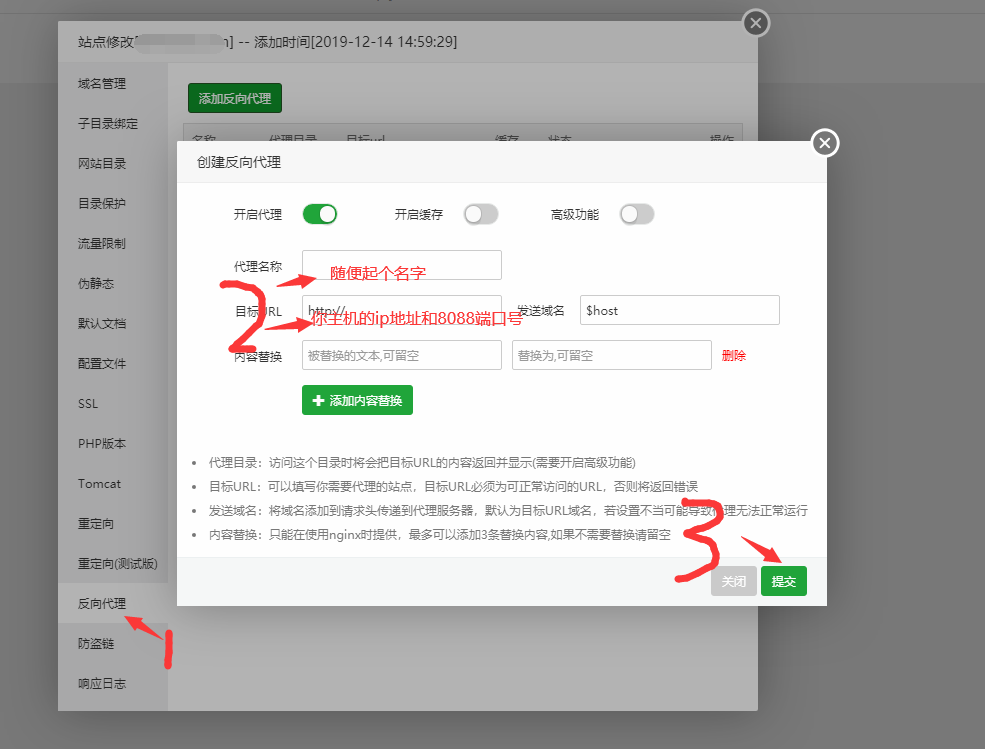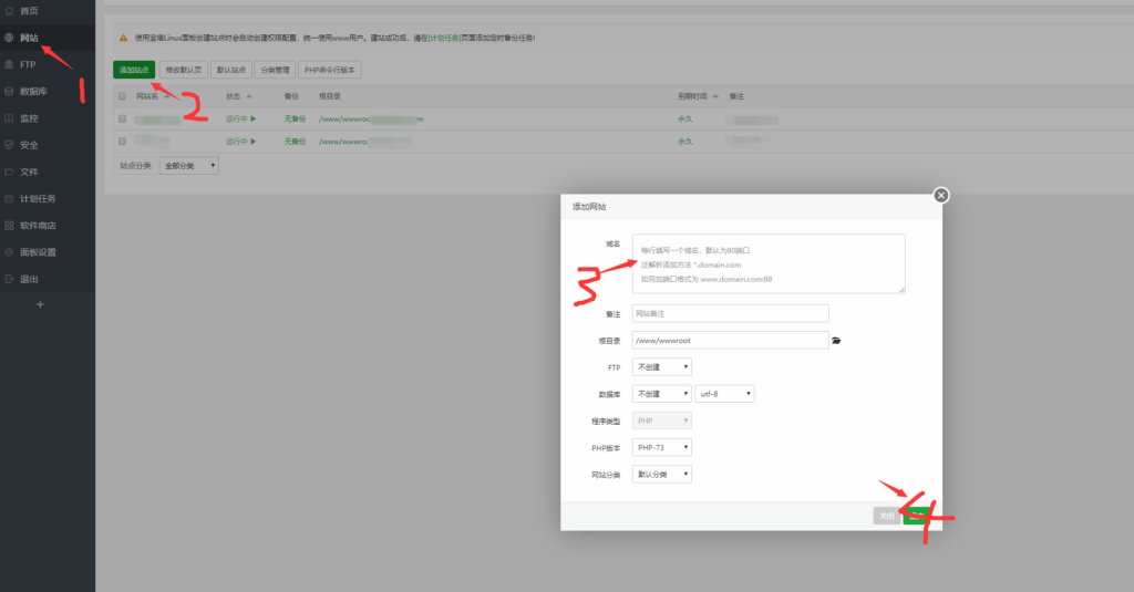 5、在宝塔-网站-新建输入域名 创建个网站程序