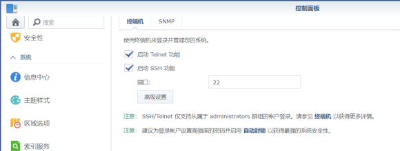 1.先登录群辉,在"控制面板"启用"TELNET和SSH"后点 应用