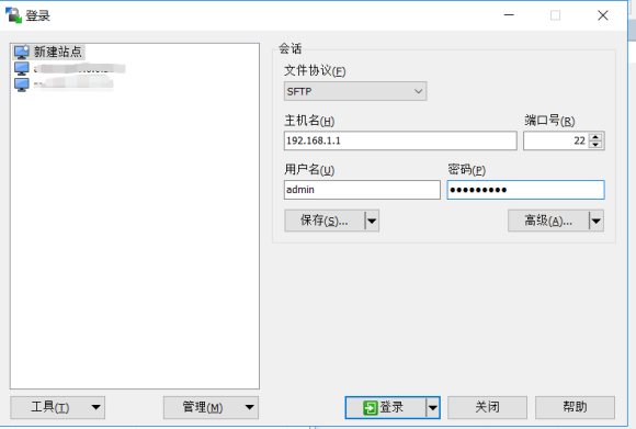 2.打开WinSCP输入你的群辉地址和端口还有账号密码后登录