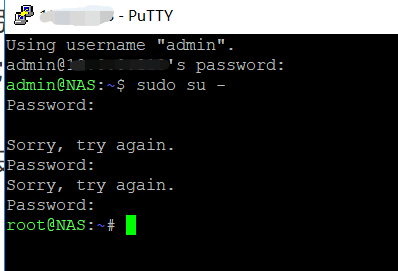 输入:”synouser –setpw root 123465“ 为 root 账号设置一个密码,xxx 为自定密码,建议和admin密码一样的,不容易忘记。